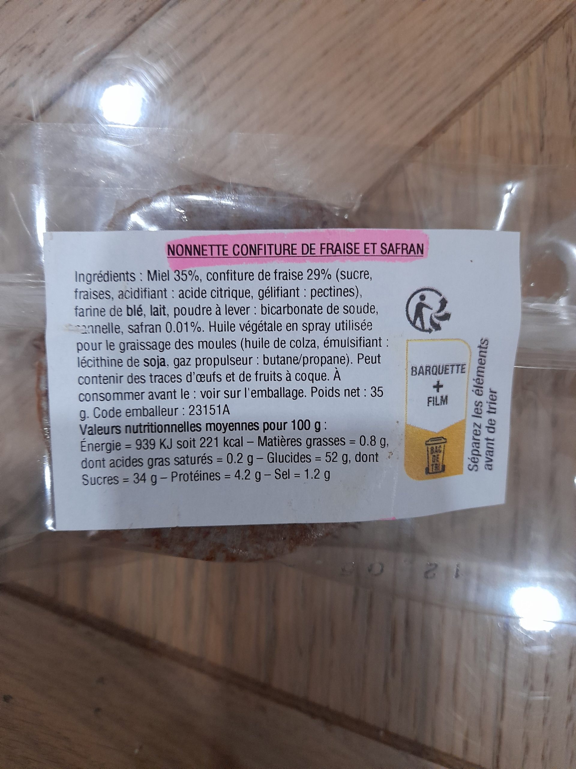 Nonnette confiture de fraise et Safran - poids net : 35g